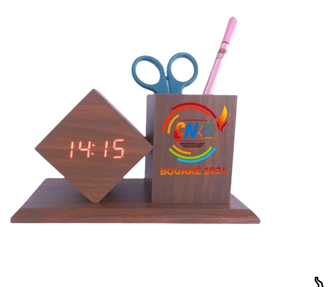 ces accessoires de bureau ultra design en bois avec horloge sont parfaits pour faire de votre bureau un environnement de travail serein.