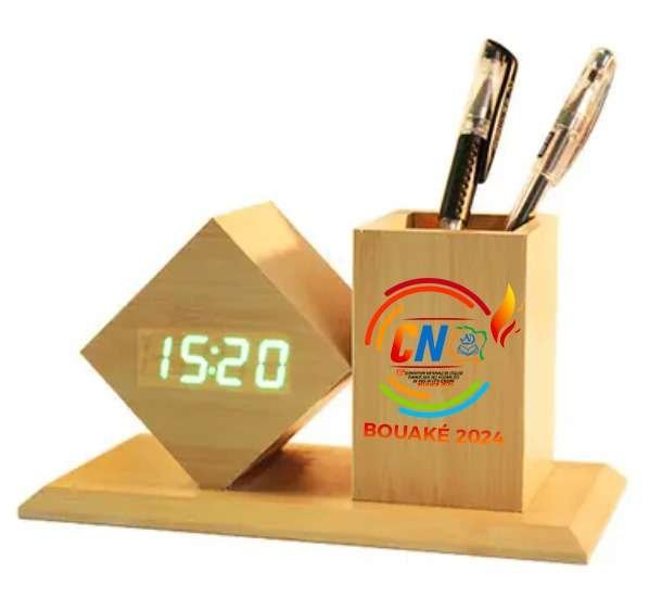 ces accessoires de bureau ultra design en bois avec horloge sont parfaits pour faire de votre bureau un environnement de travail serein.